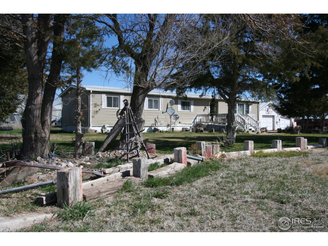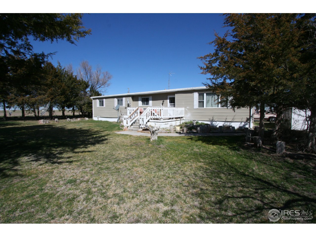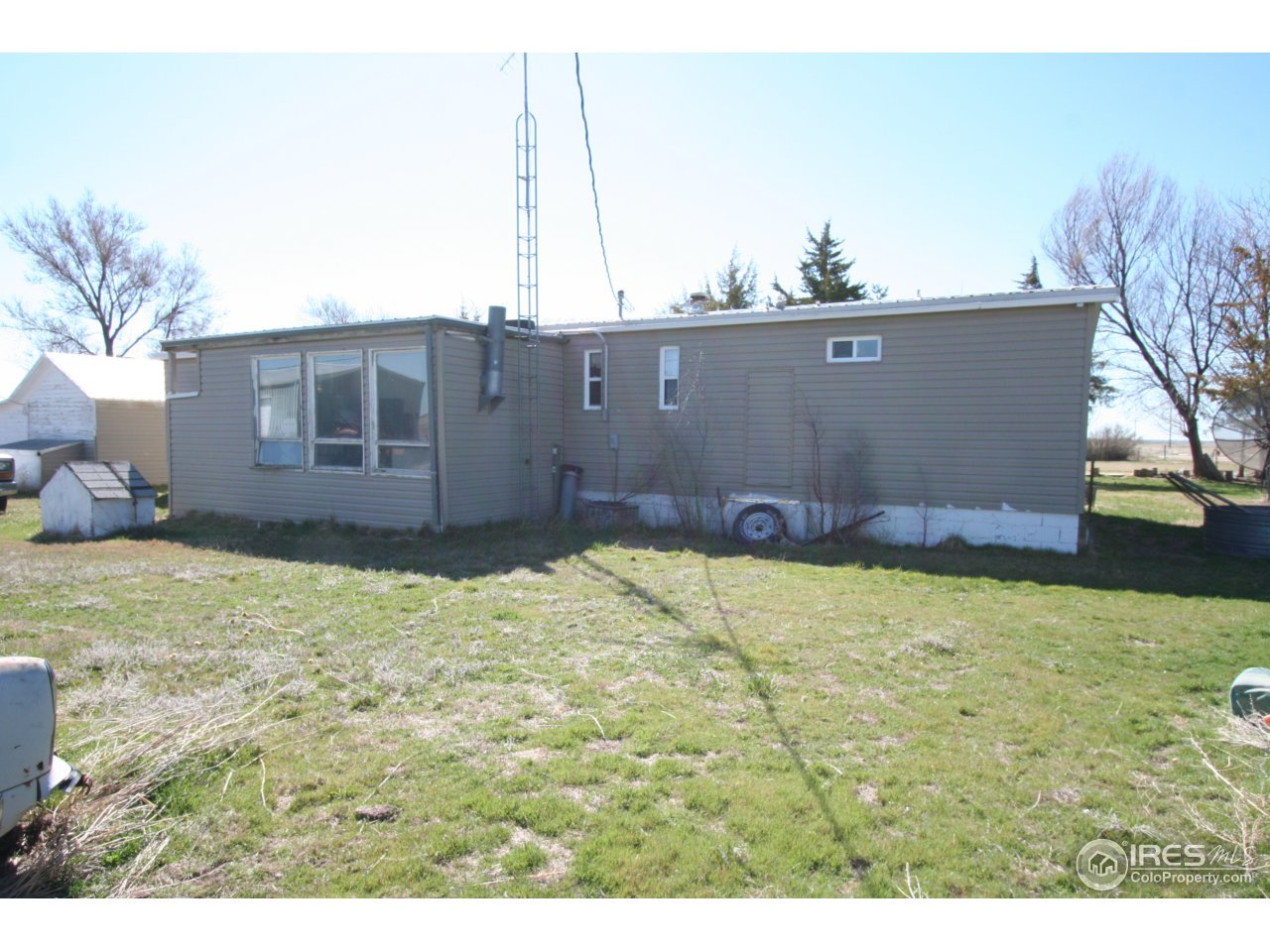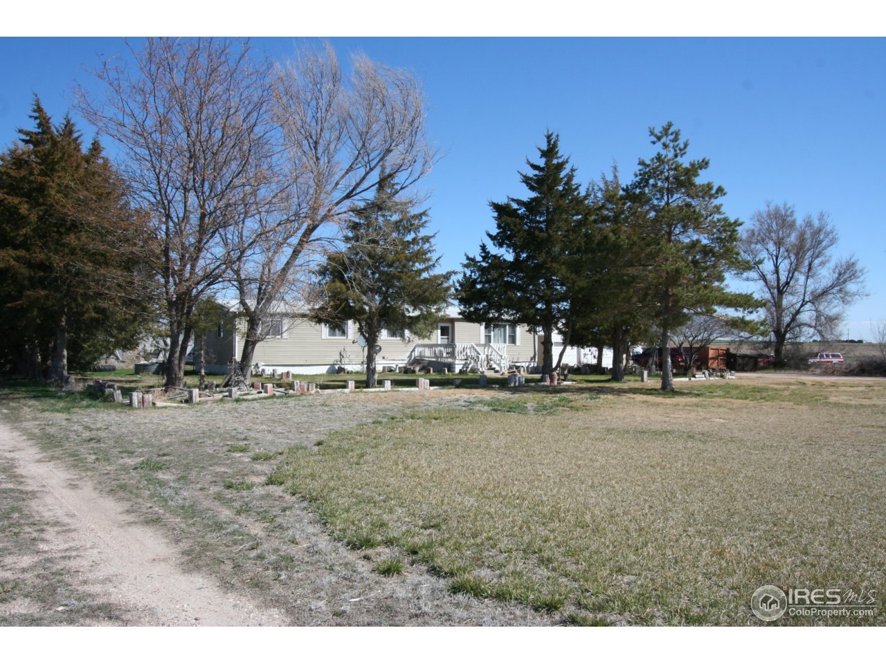 This peaceful property is located on a paved county road just North of Brush & Snyder. 5 Acres with a manufactured ranch style home that has 3 bedrooms & 2 bathrooms. Could be an established property for a custom home if Buyer desires with utilities, trees, grass already in place! 2 Shops, yes 2 that are in great condition. One of the shops is insulated & heated! Very large front yard with lots of trees!